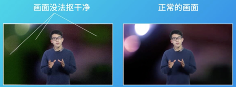绿幕平整、光照均匀,绿幕前的人和物品远离绿幕(建议距离2~3米),不可穿绿色或半透明的衣服,不可摆放绿色或半透明的物品,不可佩戴或摆放反光的饰品或物品。