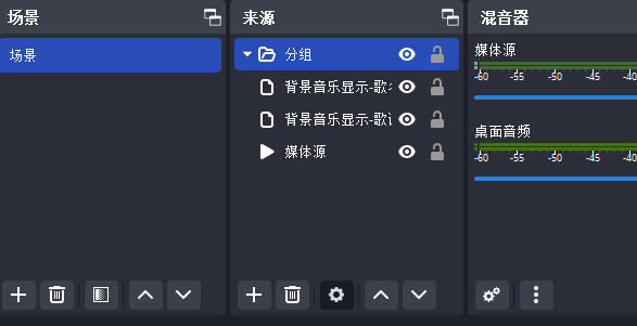 - 将需要录制的来源都拖动到分组中,这个操作不会影响到画面显示