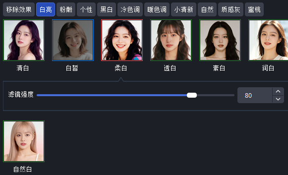 而此次更新中除了新增对于Blackmagic Design产品的支持之外,滤镜功能的上线也让主播们在使用美颜摄像头的同时,能有更多摄像头显示效果的调整,不同分类下都提供了许多滤镜效果,选择其中一种滤镜之后,即可在画面上试试看到效果,如果对于滤镜效果的强度不满意,还可以通过滤镜强度进行调整,打造最美直播间。