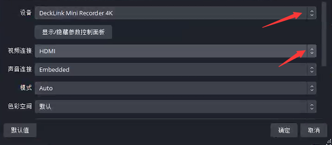 如果是使用Blackmagic Design的主播,在更新了美颜摄像头版本之后,在OBS中添加源的时候选择“Blackmagic美颜”后,在弹出的窗口中设备选择使用的采集卡设备,并在视频连接一栏选择“HDMI”,完成设置后即可开始使用美颜摄像头了。