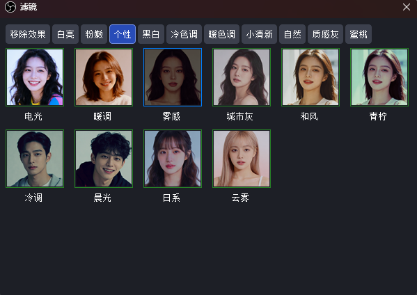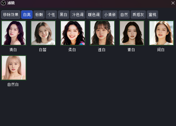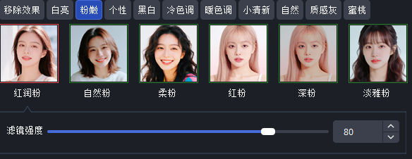 除了提供丰富的滤镜选择,用户在选择了某个滤镜之后,窗口中还会出现滤镜强度的选择,用户可以根据实际的显示效果和直播需要,调整滤镜强度,让直播效果达到最佳。