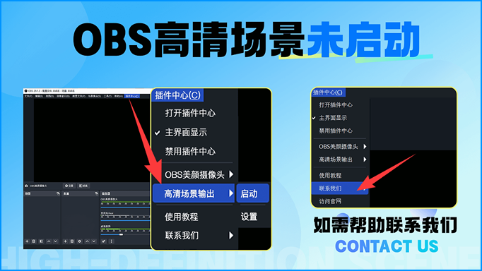 为了方便新主播们更好的上手使用高清场景输出,插件内新增了教程按钮,对插件不熟悉的新手主播们可以跟着教程操作快速上手。此外,插件未启动的时候会出现提示图片,提示图片上会有操作提示,主播跟着图片上的步骤操作即可开始使用插件。